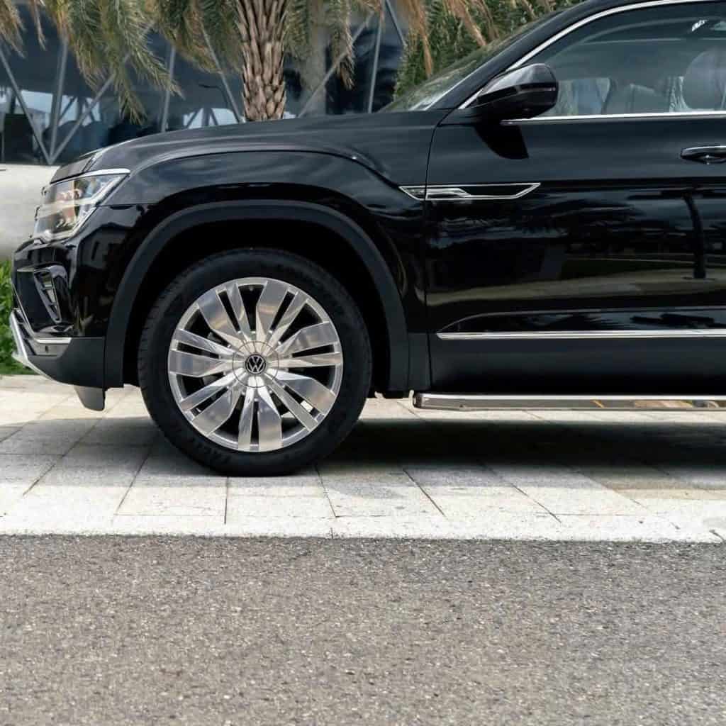 Được thiết kế theo kiểu đường gân dập nổi tạo sự vuông vức và cơ bắp làm tăng thêm sự chắc chắn, mạnh mẽ hơn cho chiếc SUV Teramont President. Tay nắm cửa được son cùng màu với thân xe và có chức năng mở khóa cảm ứng.