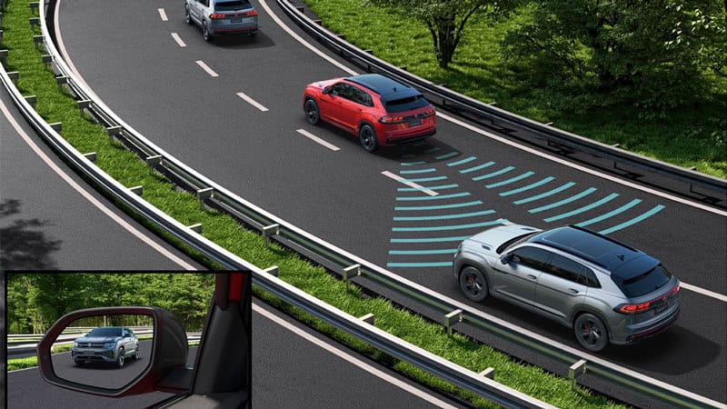 Hệ thống sẽ cảnh báo sự nguy hiểm khi chuyển làn đường, biểu tượng cảnh báo sẽ xuất hiện trên gương chiếu hậu nếu có phương tiện xuất hiện trong khu vực điểm mù của xe.