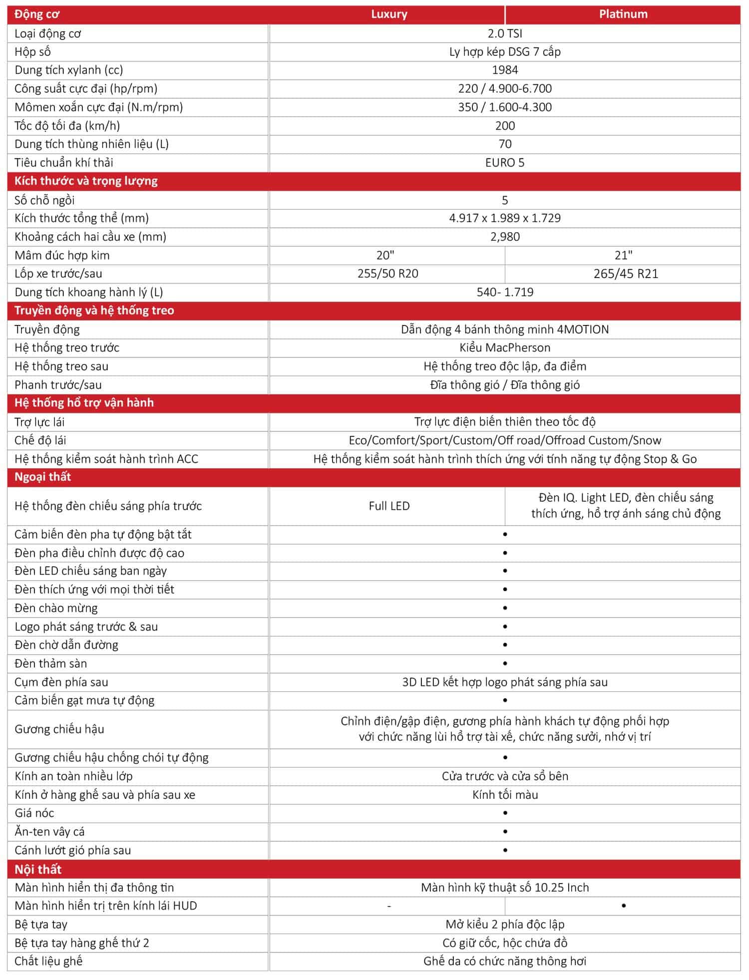 Thông Số Kỹ Thuật Volkswagen Teramont X