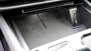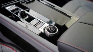 Khu vực điều khiển trung tâm thiết kế lớn với công tắc chuyển số điện tử nhỏ gọn và sang trọng, nút khởi động start/stop thiết kế thuận tiện trong tầm tay.
