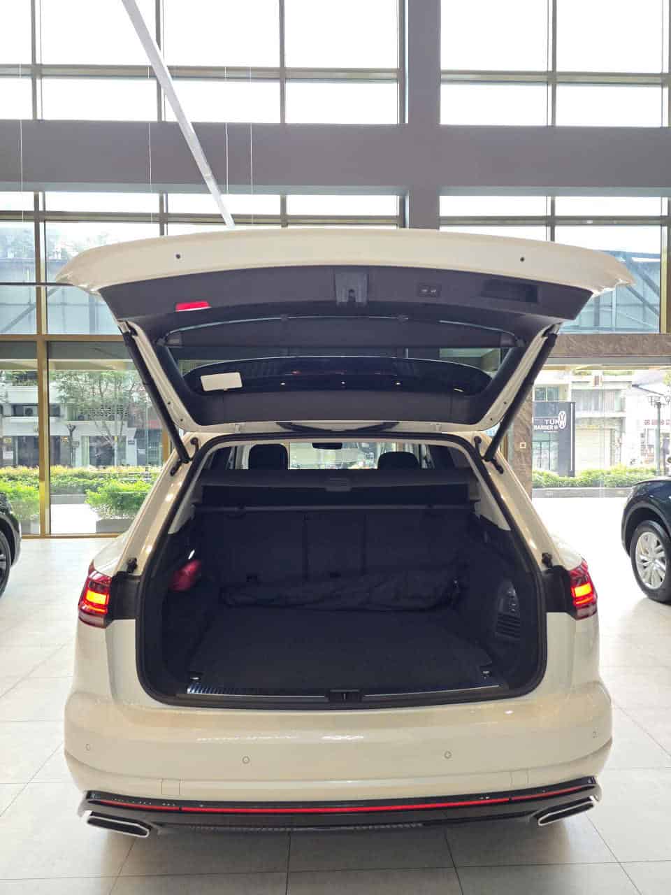 Volkswagen Touareg 2023 có khoang hành lý “mênh mông” với dung tích tiêu chuẩn 810 lít và có thể mở rộng lên 1.800 lít khi gập hàng ghế thứ 2, có thể chở theo nhiều đồ đạc khi cần thiết mà không quá lo về không gian chứa.